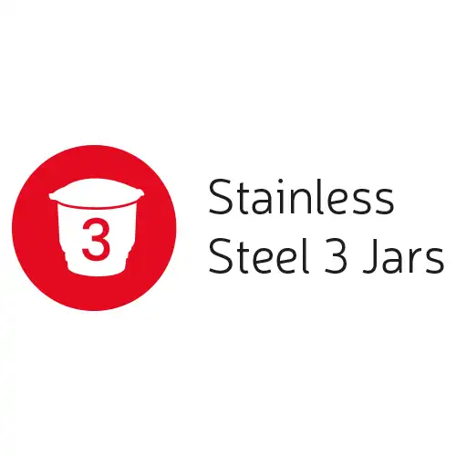 • 3 stainless steel jars, liquidizing Jar 1.5L, Dry/wet grinding jar 1.0 & chutney jar 0.4L capacity.
